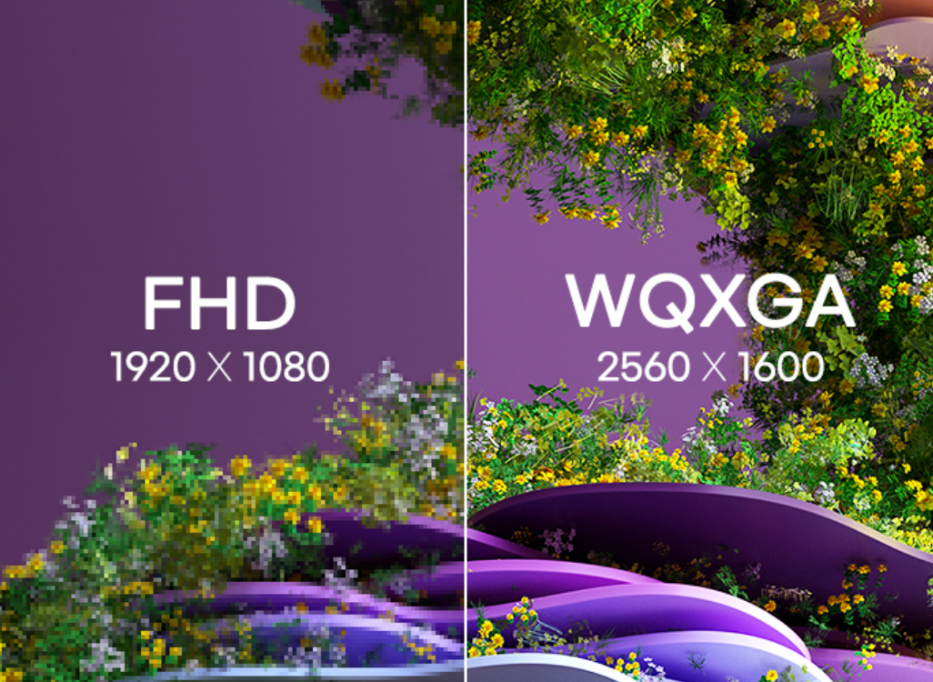 Full HD(1920X1080)은 약 200만 화소이지만, WQXGA(2560X1600)은 약 400만 화소로 약 두 배 차이가 남을 알 수 있습니다.
