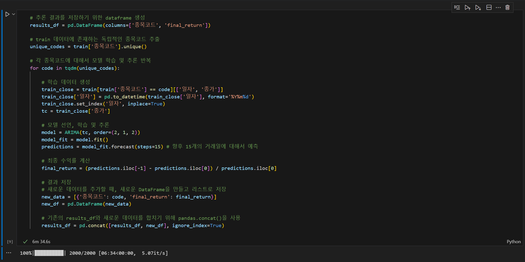 # 각 종목코드에 대해서 모델 학습 및 추론 반복